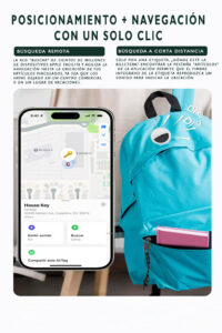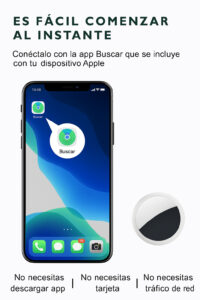 Rastreador inteligente que se conecta a tu iPhone a través de la app Find My. Ubica tus pertenencias estés donde estés, sin apps adicionales.
